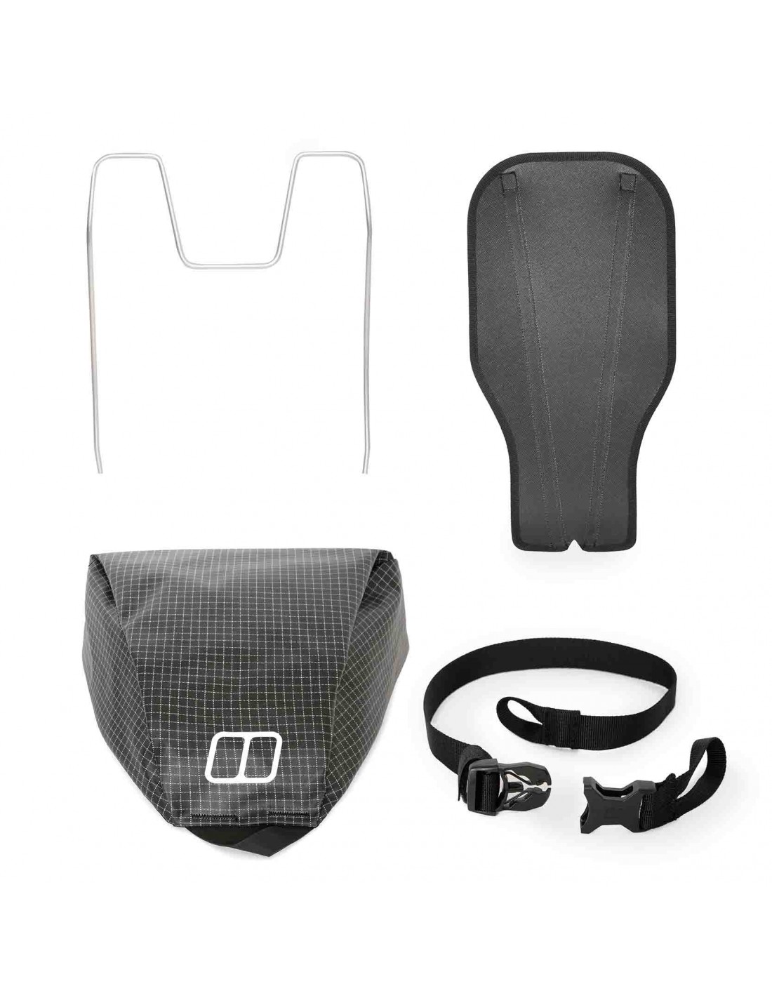 - Las múltiples opciones para desmontar la mochila te permiten adaptarla a tus necesidades específicas, eliminando elementos como: correas y acolchado del cinturón lumbar; tapa y cierre de la tapa; correas de compresión laterales; soporte para casco; correa para el esternón; tablero trasero; armazón; varillas de aluminio.
