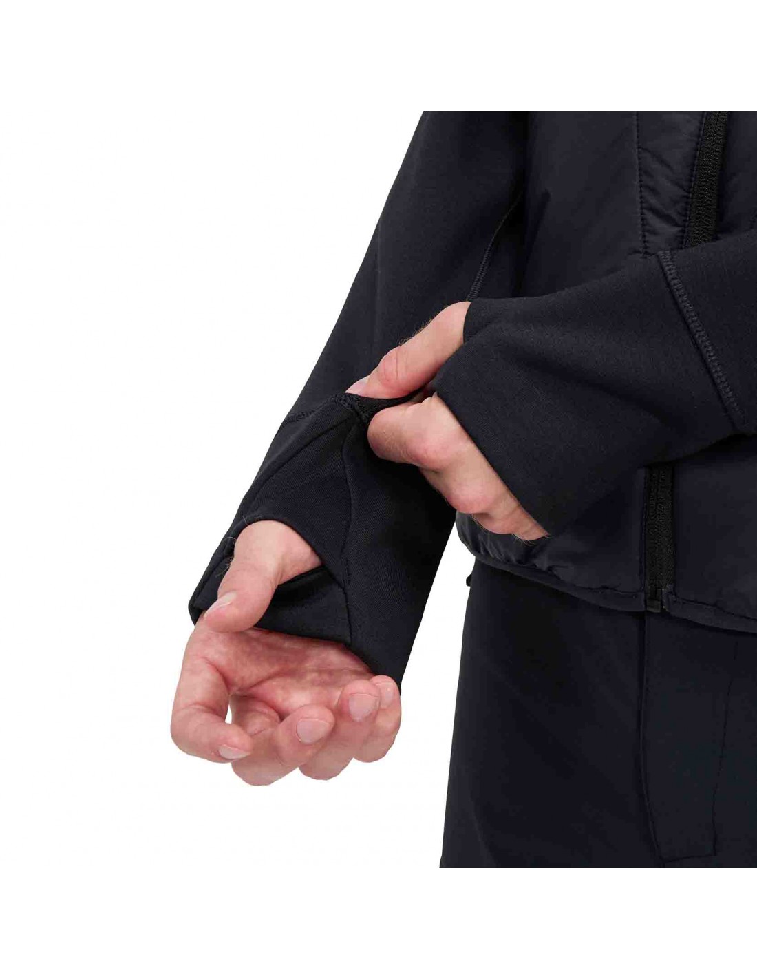 Agujeros para los pulgares en los puños que mantienen las mangas en su sitio y protegen del viento