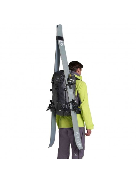 - Puntos de fijación reforzados para transportar esquís y piolets.